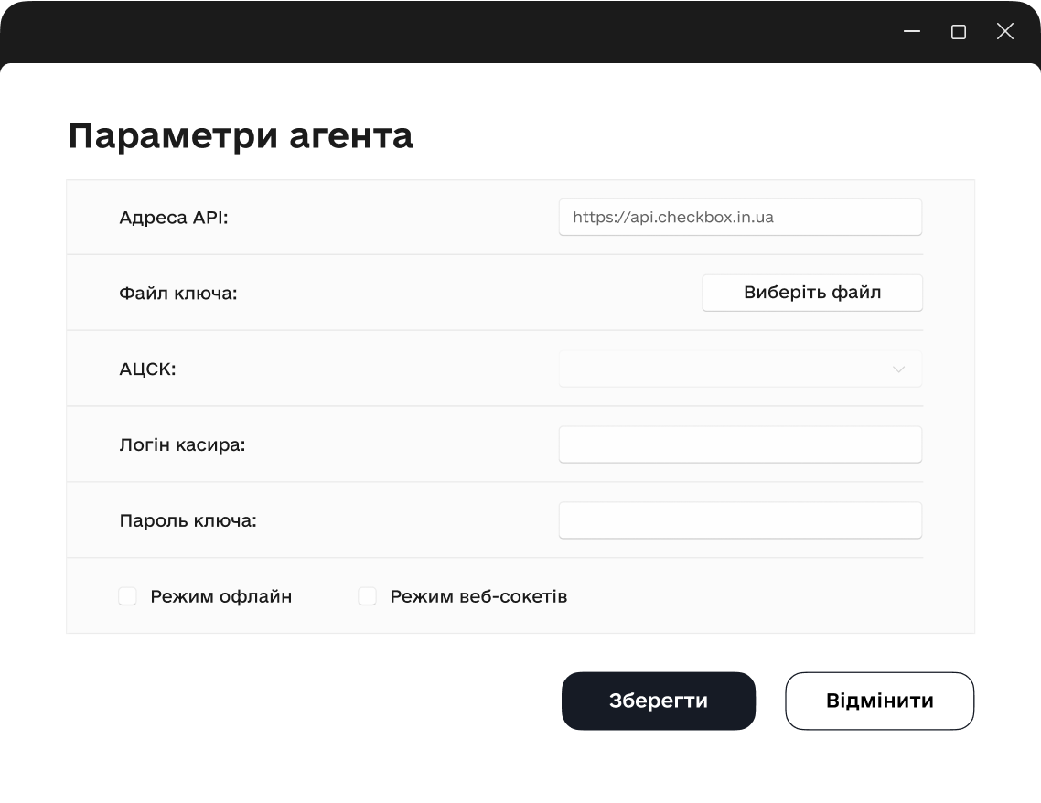 Завантажте та встановіть програму Checkbox.Підпис на Ваш комп’ютер або запустіть програму Checkbox.Підпис у захищеному хмарному сервісі. До завантаження приймаються лише ключі-печатки юридичних осіб (ТОВ або ФОП).