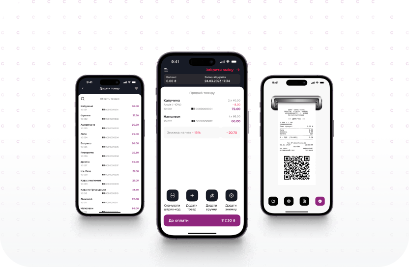 Видавайте чеки зі смартфона — зручно для курʼєрів, виїзної торгівлі та мобільних команд.
