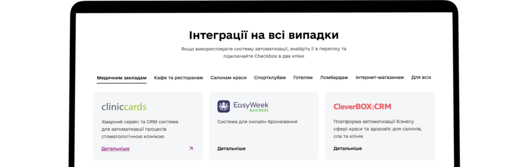 Якщо використовуєте систему автоматизації, знайдіть її в переліку та підключайте Checkbox в два кліки