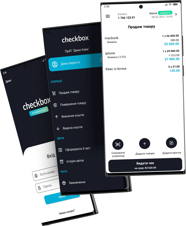 Внесіть дані вашої торгової точки, додайте касу та касира. Для реєстрації касира та підпису чеків оберіть один із способів: зчитати файл ключа ЕЦП або створити хмарний ключ DepositSign.